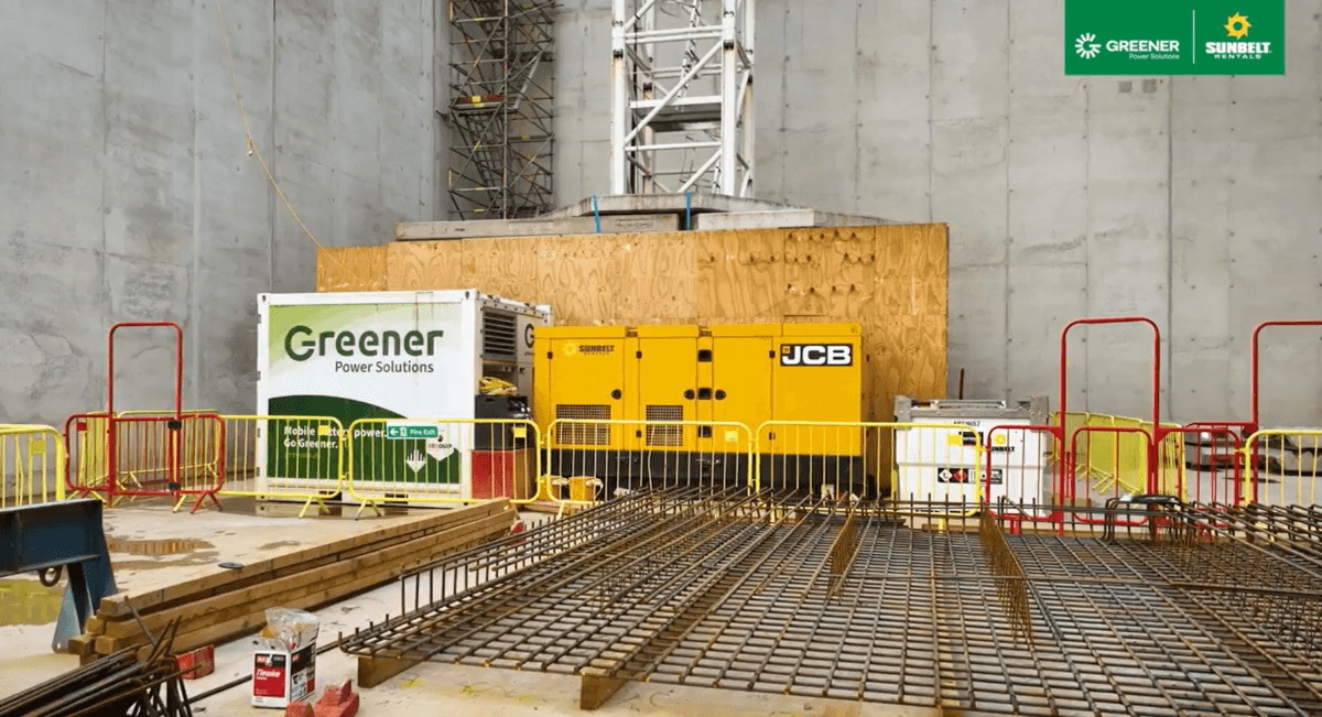 I denna hybridsetup används Sunbelt Rentals 300 kVA-generator för att ladda Greeners BESS. Batteriets Energy Management Software (EMS) kallar på generatorn när laddningsnivån når 35 procent. EMS startar då generatorn för att ladda batteriet på 80 procent av dess maximala effekt och stänger av generatorn när batteriet är fullt. Detta gör att generatorn arbetar på sin mest effektiva nivå och aldrig står och går i tomgång.